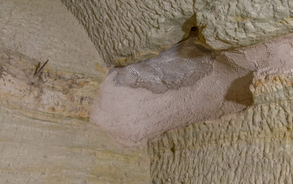 Cette étape des travaux consiste d’abord à consolider, par endroits, les murs du futur gîte, à l’endroit où sont présentes des poches d’argiles, plus fragiles que la roche.
